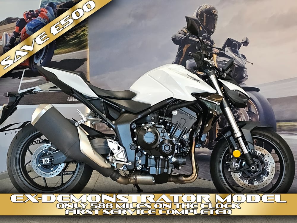 2025 HONDA CB1000 HORNET IN EXCELLENT CONDITION. EX-DEMONSTRATOR WITH ONLY 588 MILES ON THE CLOCK, FRESH SERVICE AT TIME OF SALE, FULL DEALERSHIP SERVICE HISTORY, HONDA FACTORY WARRANTY AND ROADSIDE ASSISTANCE OFFER VALID UNTIL JANUARY 2027. AS COMFORTABLE AS IT IS POWERFUL, THIS CB1000 HORNET IS SOME MACHINE. BENEFITING FROM A RE-TUNED 2017 FIREBLADE ENGINE, AND BOASTING AGGRESSIVE BUT MINIMALIST STYLE, THIS TOP OF THE RANGE HYPERNAKED COMES IN AT JUST OVER 9K NEW AND WITH OUR EX-DEMONSTRATOR DEAL, YOU'RE SAVING AN EXTRA 500 SMACKEROONIES OFF THE PRICE AND GETTING THE FIRST SERVICE INCLUDED. SO THAT'S A FULL YEAR OF RIDING WITHOUT HAVING TO WORRY ABOUT THAT PESKY FIRST SERVICE! BARGAIN!